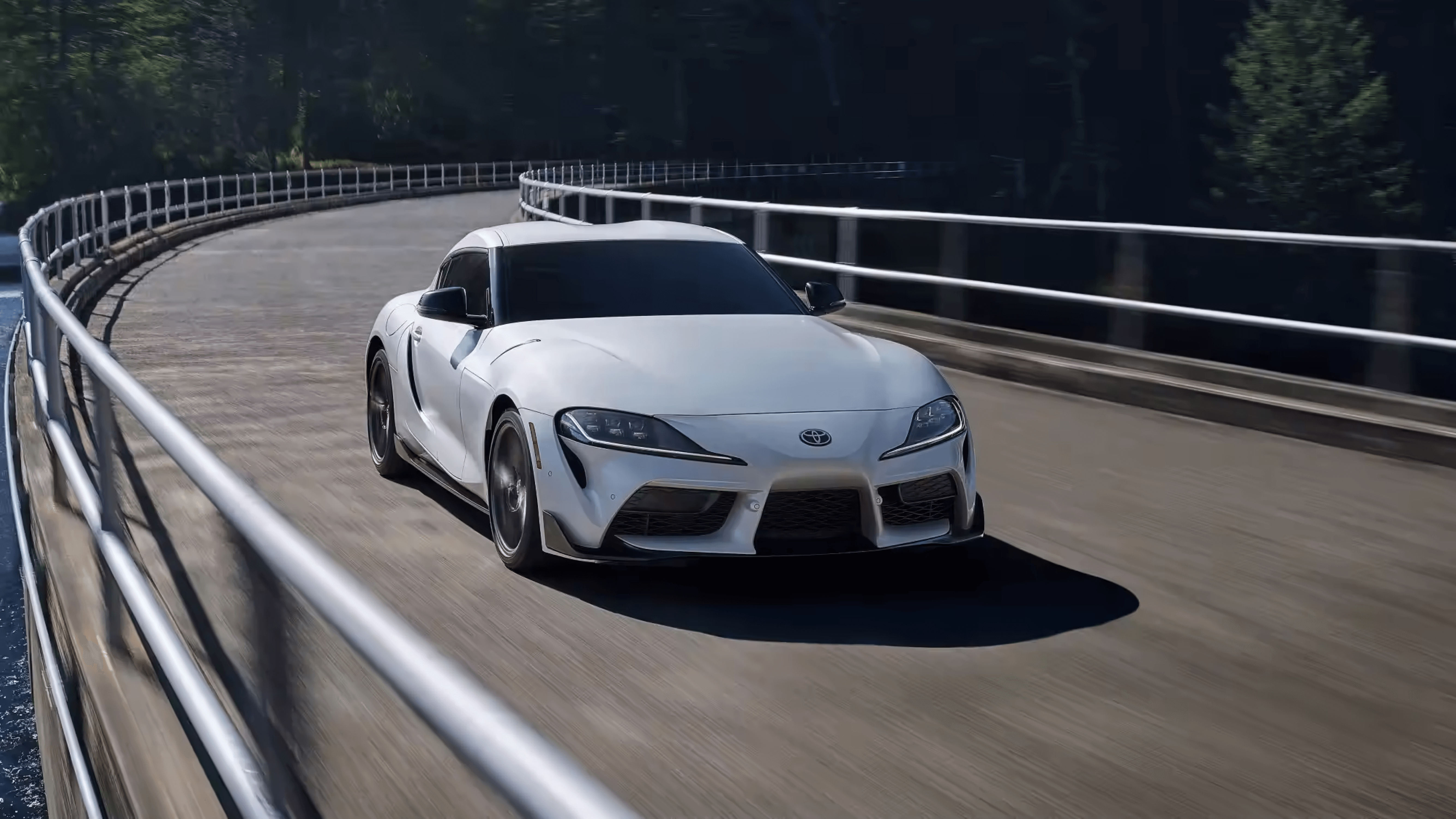 Спортивный флагман Toyota, GR Supra 2023 года, выгодно отличается от более спокойных седанов, хэтчбеков и внедорожников.