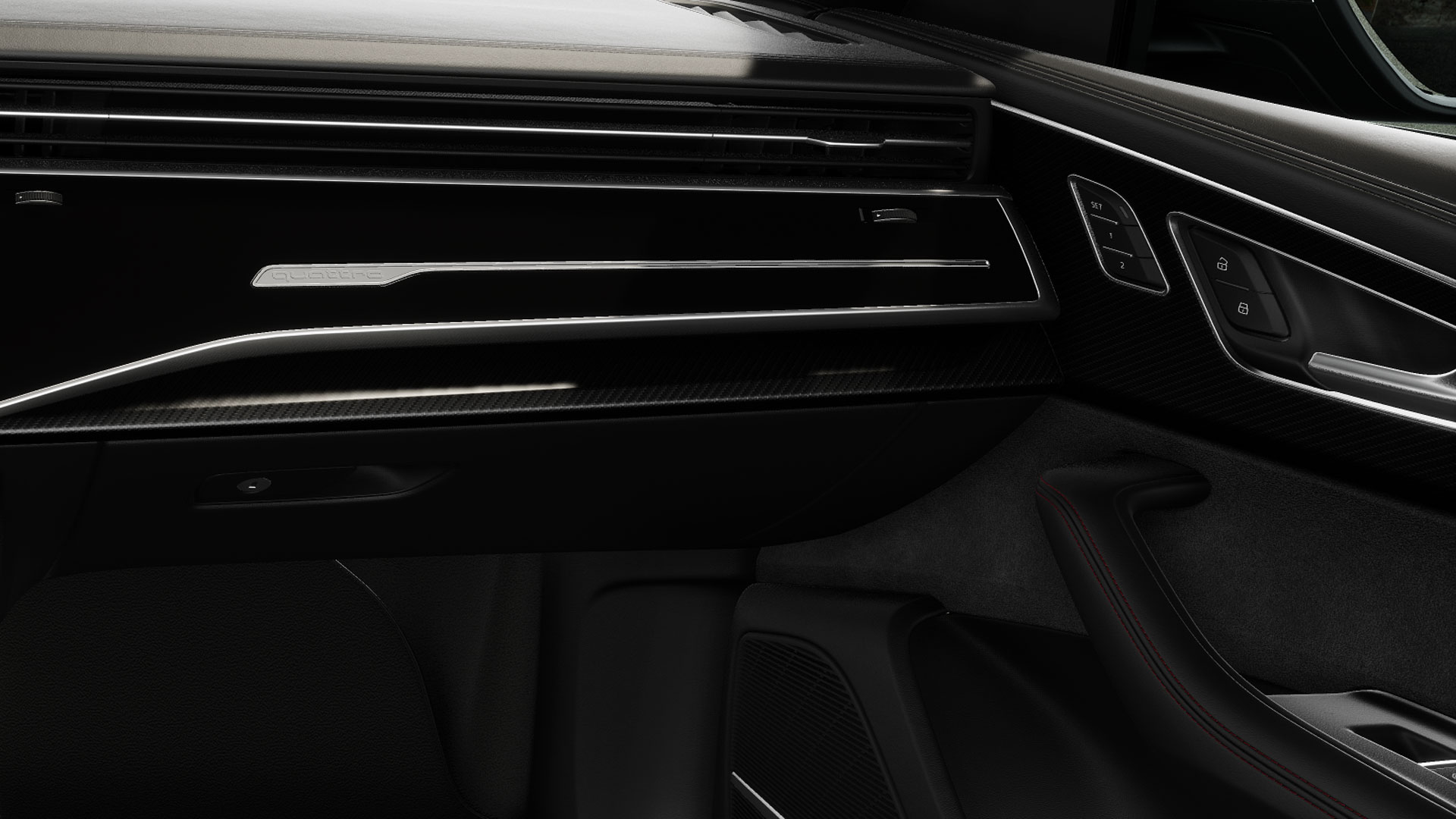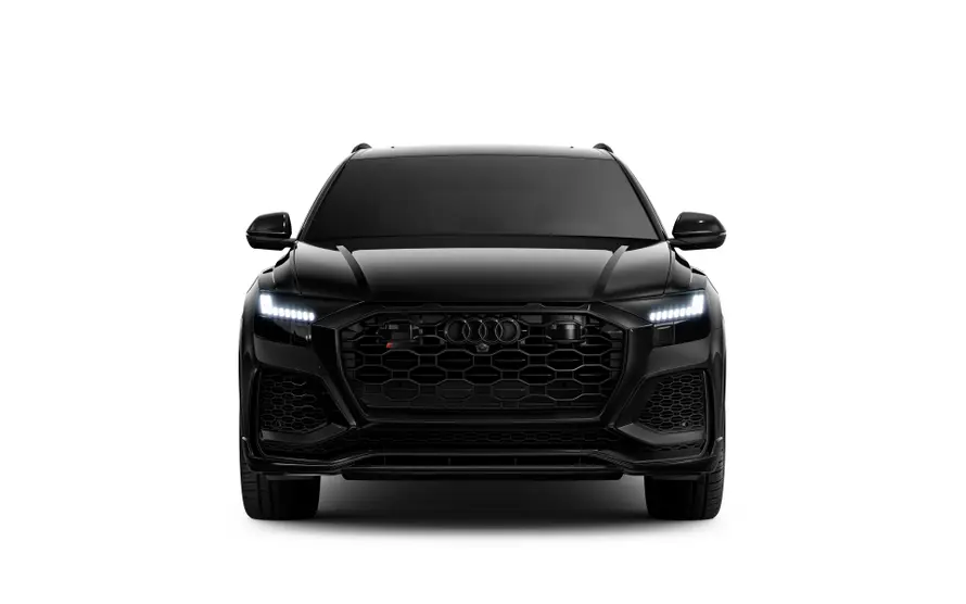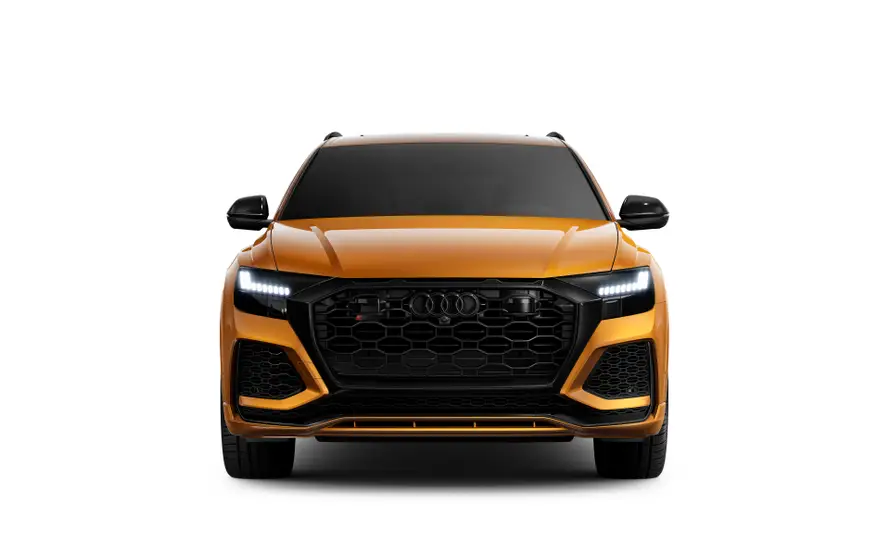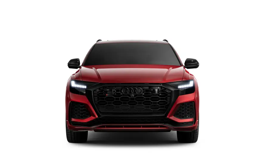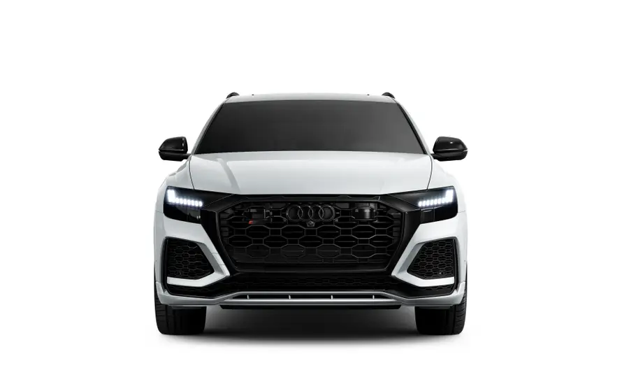 Динамический потенциал Audi RS Q8 бросается в глаза с первого взгляда. Профиль автомобиля подчеркивают низкая линия крыши в задней части, расширенные на десять миллиметров колесные арки и сплошные накладки порогов RS, окрашенные в цвет кузова. В передней части впечатляют бампер RS в спортивно-динамическом стиле с решеткой радиатора, структура которой напоминает решетку, и большие воздухозаборники, а также передний спойлер и оформление решетки Singleframe.