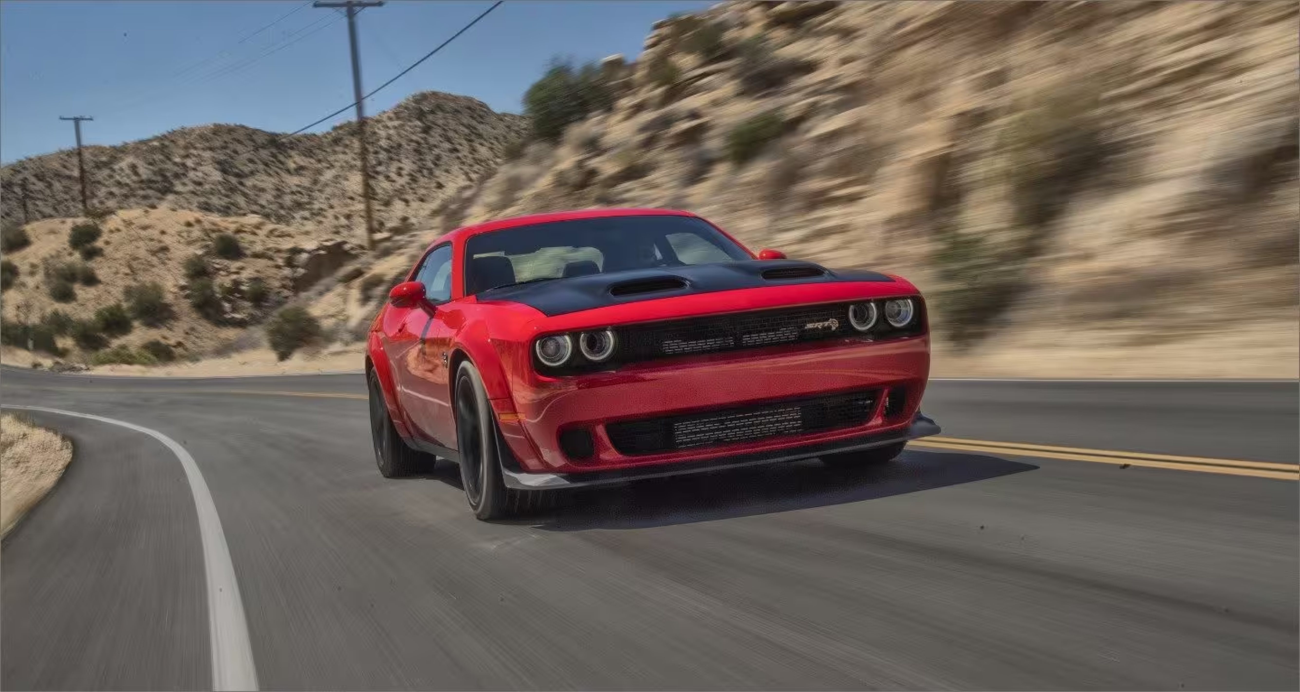 Dodge Challenger выглядит запоминающимся и мощным. Он имеет агрессивный взгляд глубоко утопленных фар и характерную поясную линию, поднимающуюся в районе задних колесных арок. Крыша авто низко посажена, корма оборудована широкими фонарями и двумя выходами выхлопной трубы.