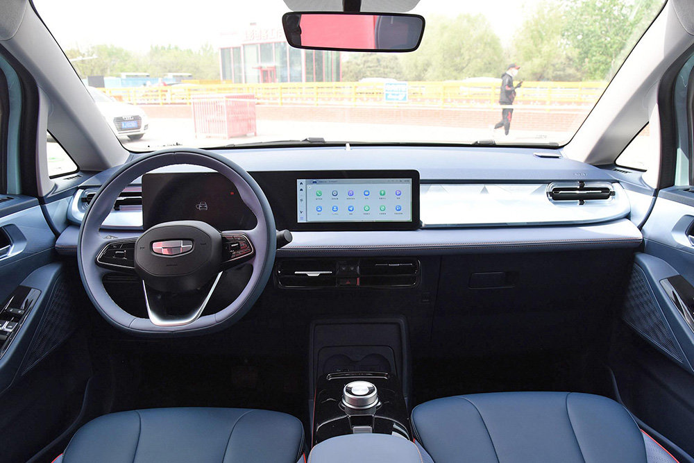 Внешний вид Geometry E можно смело назвать уникальным и нестандартным: дневные фары визуально соединены в одну линию, а нижние — оснащены накладками контрастного цвета. Задние фонари имеют форму бумеранга. Стоит отметить, что Geometry E является единственным в своем сегменте автомобилем с полностью светодиодными фарами, причем в стандартной комплектации.