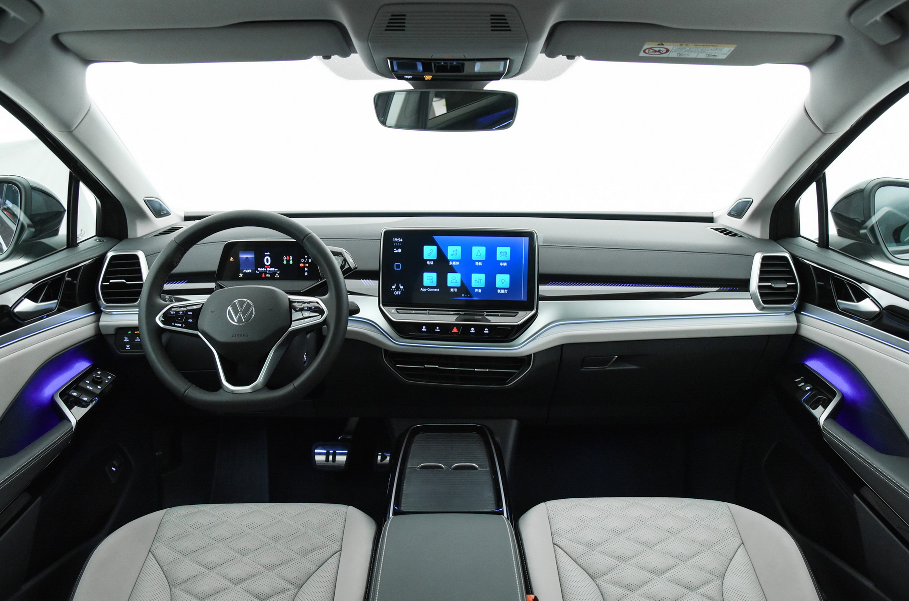 В салоне почти отсутствуют физические кнопки. Их заменил 12-дюймовый тачскрин медиасистемы, что делает ID.6 CROZZ настоящей мобильной комнатой с ощущением высокого качества. В стандартной комплектации автомобиля уже присутствует третий ряд сидений, однако можно выбрать из двух вариантов салона: семиместный или шестиместный. В первом варианте на втором ряду установлен трехместный диван, а во втором — два "капитанских" кресла. В любом случае, сиденья второго ряда могут регулироваться в продольном направлении.